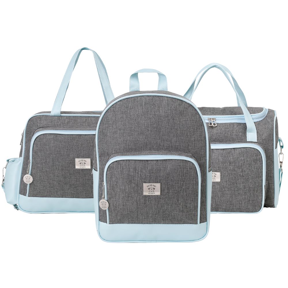 Produzido em tecido mescla resistente, com detalhes em duna, costuras reforçadas e ferragens de metal de alta durabilidade, o kit é pensado para acompanhar os pais em todos os momentos com segurança e conforto.
